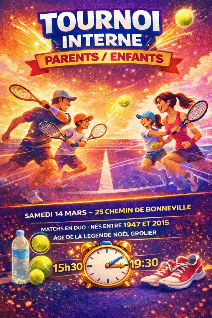 Le club a le plaisir de vous inviter à un tournoi interne Parents / Enfants ( un des deux participants doit être licencié au club), placé sous le signe du plaisir, du partage et de la convivialité